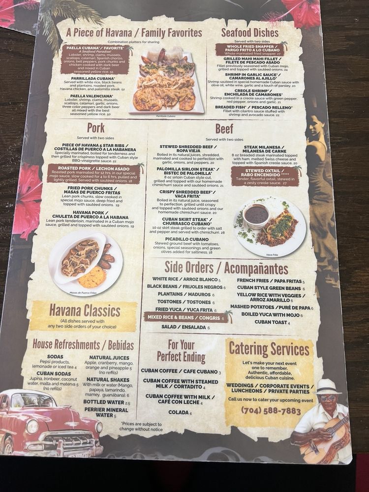 A Piece Of Havana is a Spanish-Latin American-Cuban restaurant located in Charlotte, NC, known for its authentic Cuban cuisine and warm atmosphere. Offering a wide range of vegan and vegetarian options, this restaurant caters to various dietary preferences. Customers praise the delicious empanadas, flavorful pasta, and Cuban sandwiches. The ambiance is vibrant, with the aroma of garlic filling the air, creating an inviting dining experience. Some customers appreciate the live music and salsa dancing nights, adding to the lively atmosphere. With excellent service and a diverse menu, A Piece Of Havana is a go-to spot for those looking for a taste of Cuban culture in Charlotte.