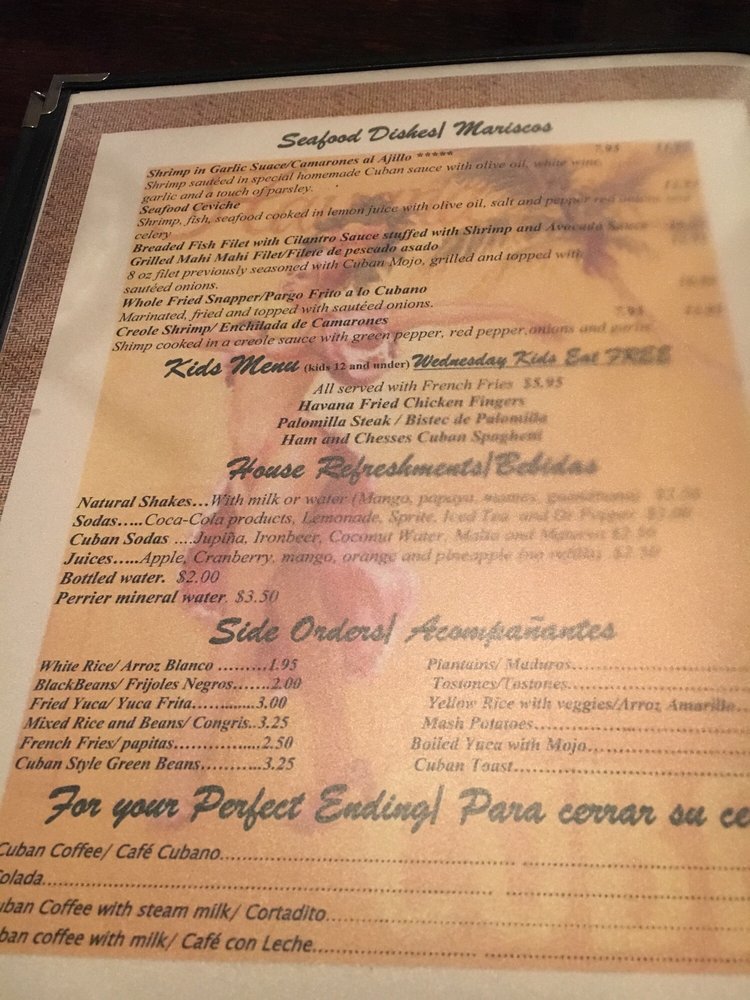 Shrimp sauteed in special homemade Cuban sauce with olive oil, white wine, garlic and a touch of parsley.